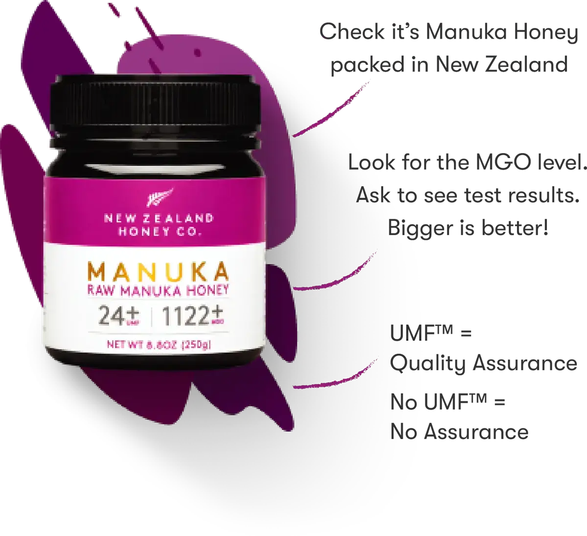All New Zealand Honey Co. Manuka Honey is independently tested and certified by the UMFHA to guarantee the UMF™ grading displayed on the label.